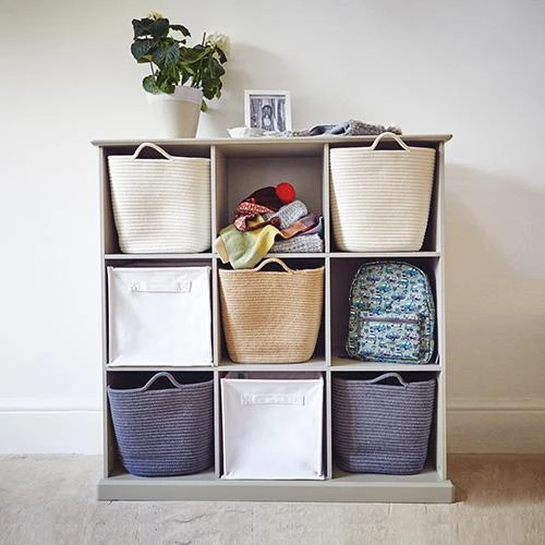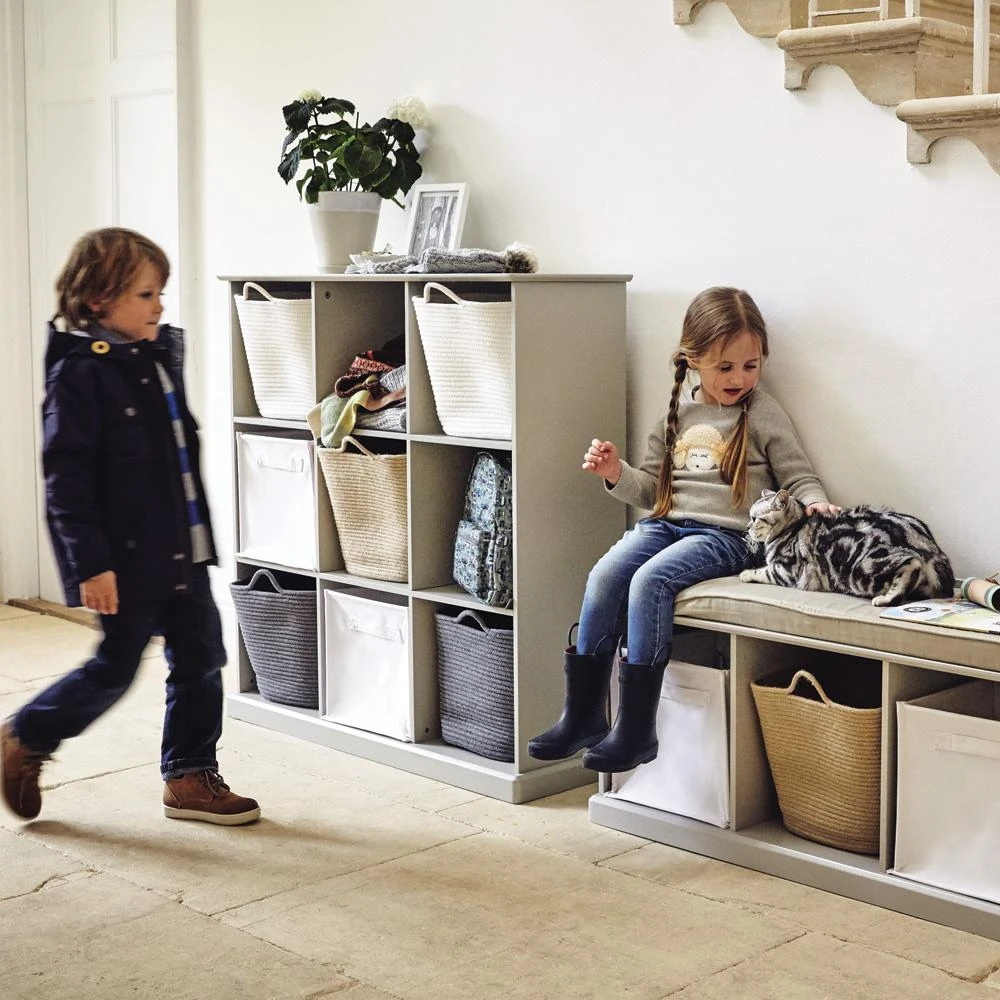 This is super versatile storage, especially in this elegant Stone colour; it’s designed to suit family spaces and hallways. There are nine open compartments to use as display shelves or bookshelves, alternatively you can add some of our gorgeous Rope Storage Baskets or Canvas Storage Cubes for extra neatness.