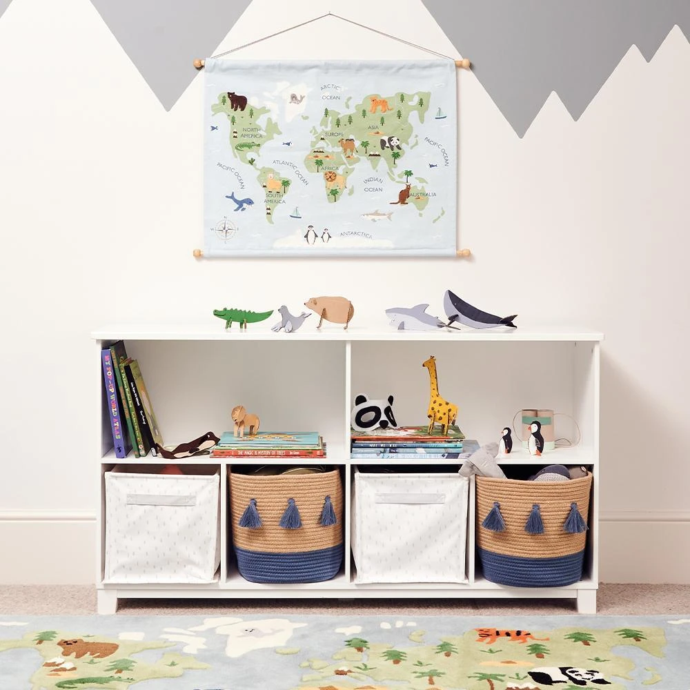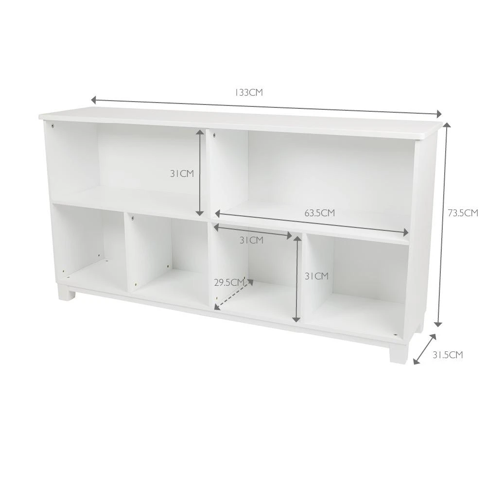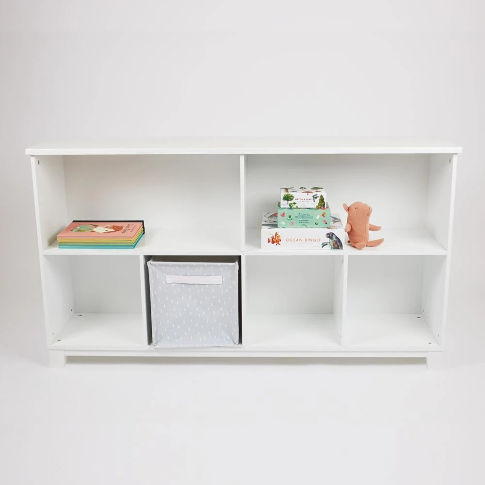 This long shelf unit offers heaps of storage space; its lower height means it can be easily accessed by children so they can find (and put away) their favourites. The contemporary cousin to our Abbeville range, it’s elevated from the ground on low-level feet to help your room feel light, open and clutter-free. It holds four Storage Cubes or Baskets and has ample shelf space for books, larger toys or one of our Carry Caddies. It’s a sturdy piece of furniture that will keep your home neat and tidy long after the kids have flown the nest.