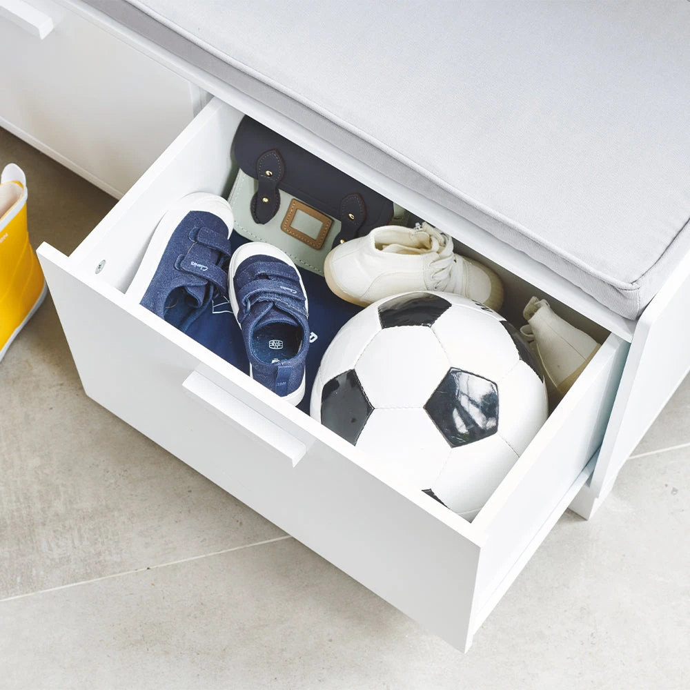 We’ve made shopping easier by combining our Blake Hallway Storage Bench and bench cushion. Not only have we made ordering both pieces quicker but this fantastic two-piece promises to make leaving the house more streamlined too. With hallway clutter hidden away in the two roomy drawers, you’ll have a clearer path to the front door, plus a sensible, comfy place to sit while getting ready too. To help you buy better, we’re now using 75% less plastic packaging on this item.