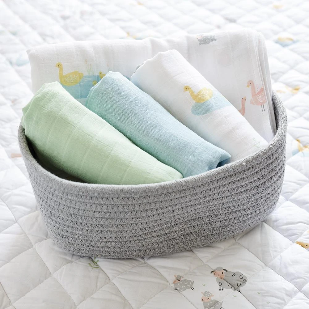 This muslin set is part of our new Day at the Farm range. The collection includes lots of lovely room accessories and storage to create a charming space for your baby to sleep and play.