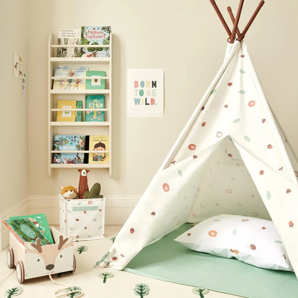 This lovely narrow bookcase displays covers facing forward making it easier for young readers to find their favourites. Its compact frame makes it ideal for smaller spaces and it can also hold little toys and treasures. The chic oatmeal colour is perfect for neutral nurseries and children’s rooms and it’s also featured in our Blake Cube Storage and Stacking Storage ranges.