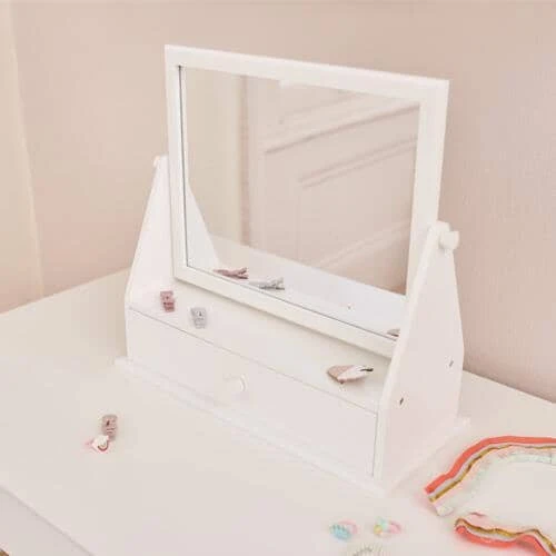 A beautiful addition to a dressing table or desk, this dressing table mirror is designed to encourage children to be a little more independent when it comes to taking care of themselves. The angle of the mirror is easy to adjust, and brushes, hair accessories, jewellery and trinkets can be safely stored within the compartments in the slide-out drawer.