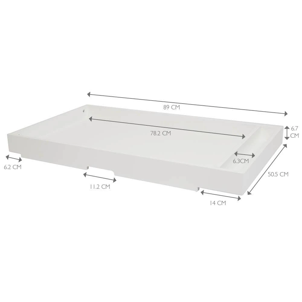 It’s designed to slot on top of the Little Wren Cot Bed but will safely fit most cot beds providing they are wider than 69cm (the length of the side panels that slot into the cot). Safety straps affix to the cot bed rails for extra security and we’ve also included protective felt strips that attach to the bottom of the changer to protect the top of your cot. It’s compatible with changing mats up to 75cm x 45cm x 5cm.