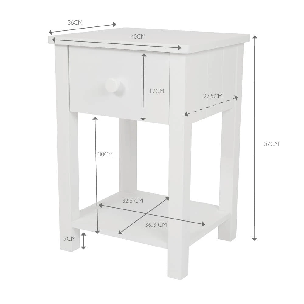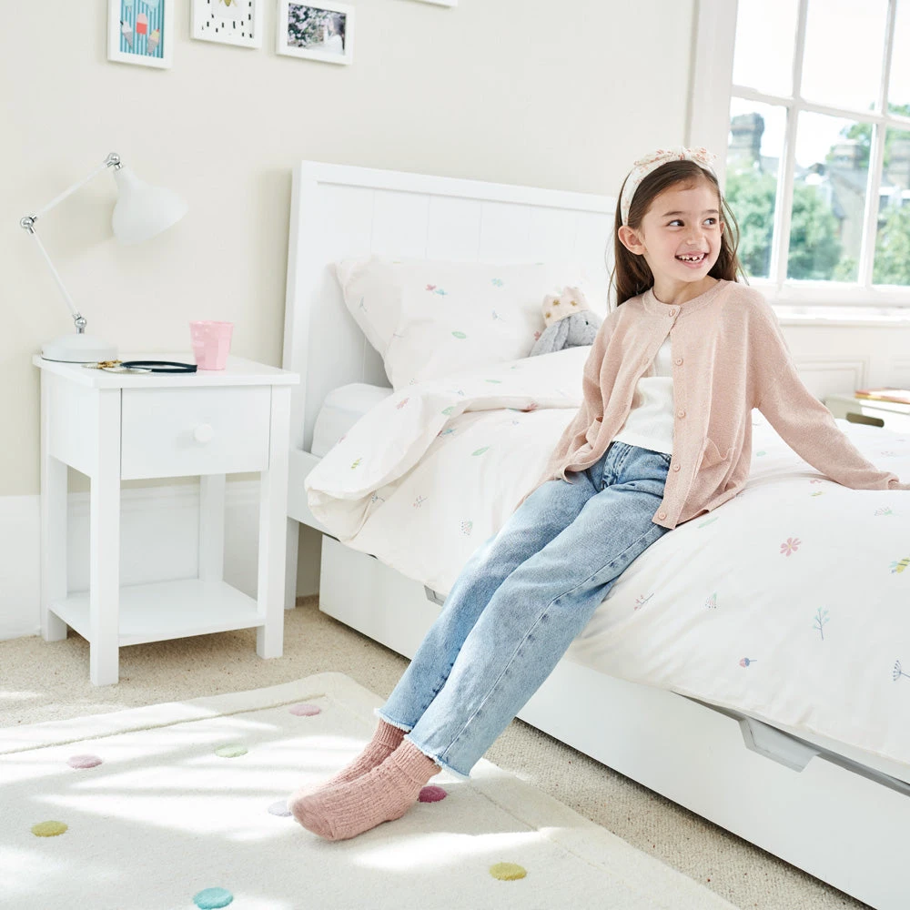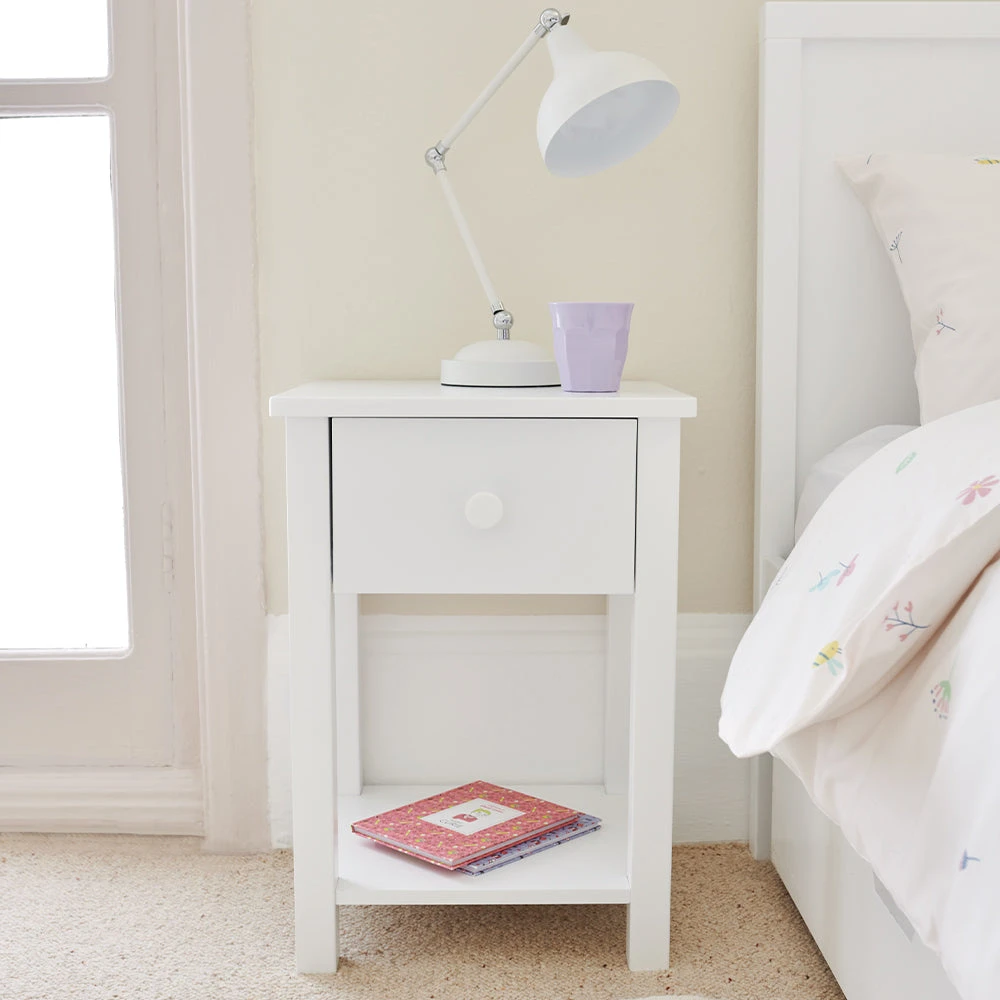 This smart, white bedside table has been designed with longevity in mind; its classic good looks means it will never go out of style and you’ll always find a home for it. It has a handy shelf and a useful drawer, and is the perfect place to pop one of our Children’s Lamps.