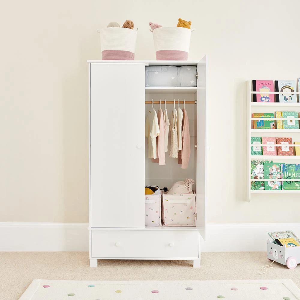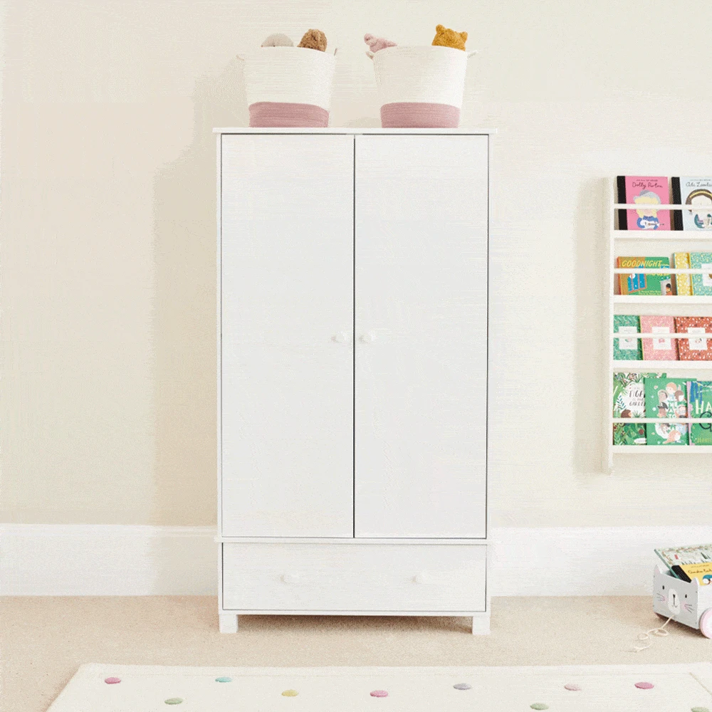 This contemporary kids’ wardrobe has plenty of hanging and storage space and a smooth-running, roomy drawer at the base. The rail can be fitted at three heights depending on the age of your child, and the shelf above can be removed. From a newborn’s nursery to a teenager’s bedroom, this wardrobe will last until they’ve flown the nest.