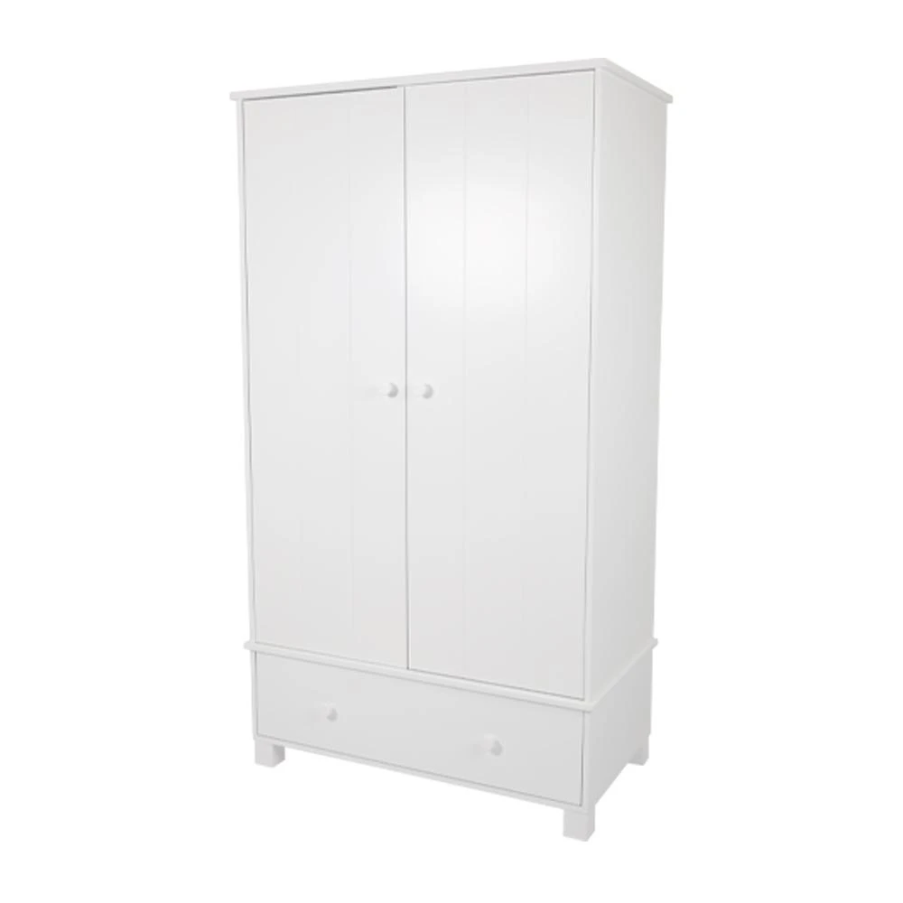 It has a solid wood frame with MDF panels, timeless tongue and groove detailing on the doors, and a durable painted finish. Like all our kids’ furniture, this children’s wardrobe is sturdily built and rigorously safety tested but we do recommend that you use the Anti-Tip Safety Kit supplied with it. Hangers sold separately.