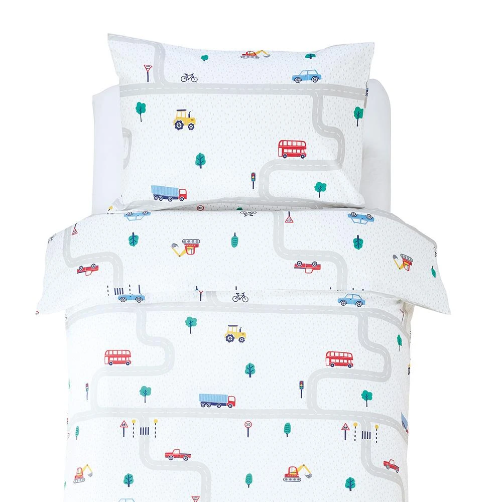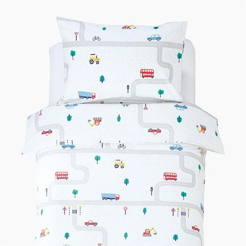 As many Mums and Dads know, some small people would rather count cars and trucks than sheep; we designed this gorgeous kids’ duvet set just for them.
