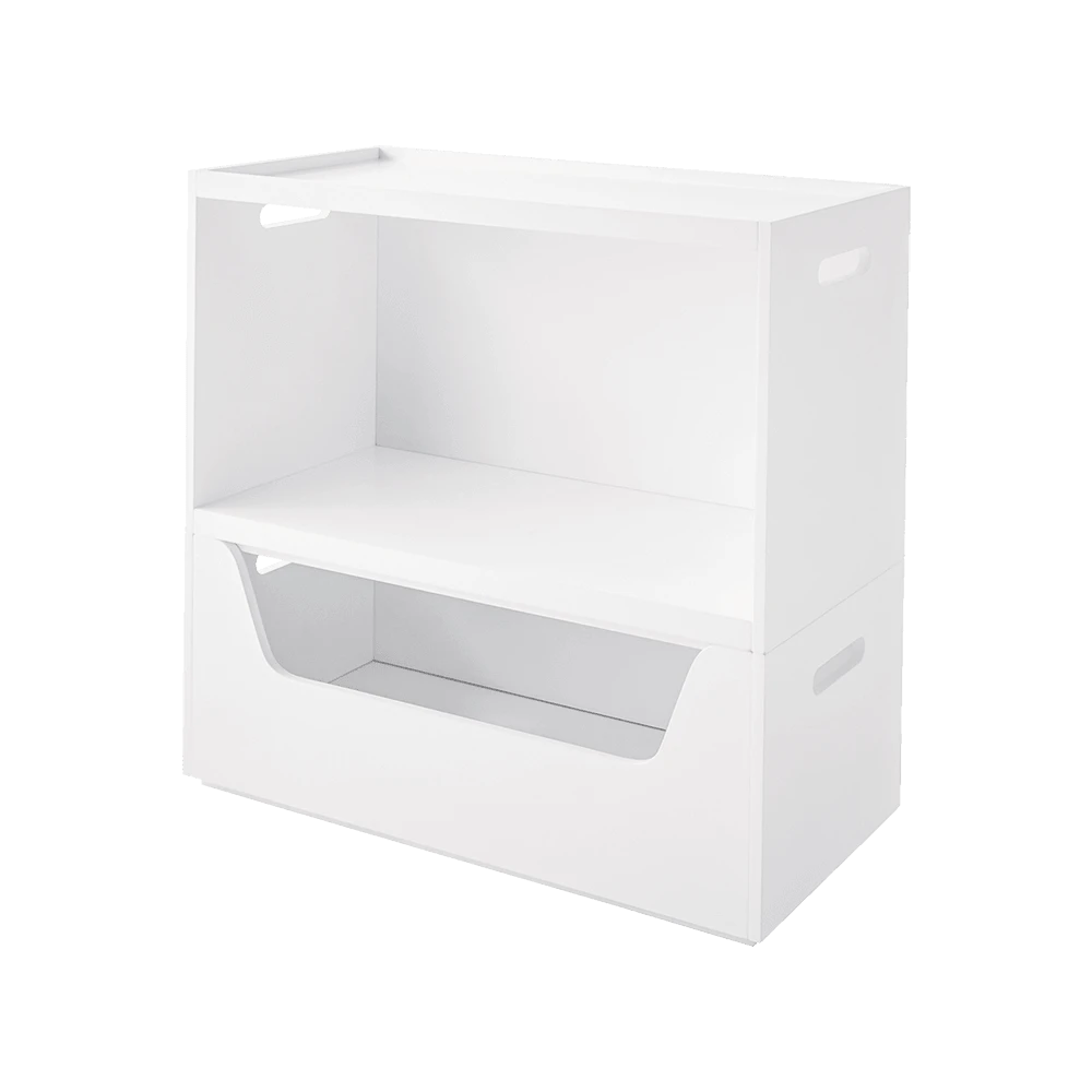 You can add up to two more pieces to this set as your child grows: choose another Rackham Book Shelf or Toy Box with a Rackham Storage Tray on top. You can also add your own unique style to this piece with a couple of our Storage Cubes.