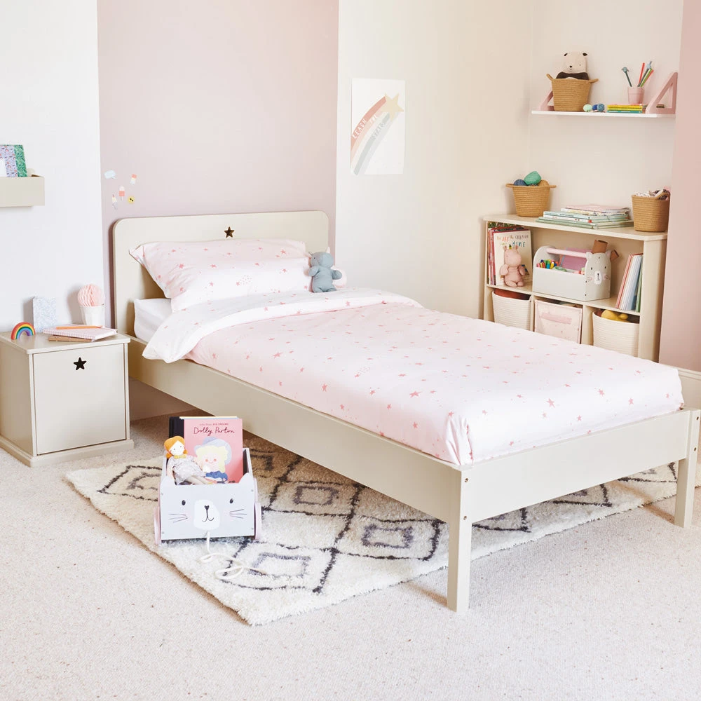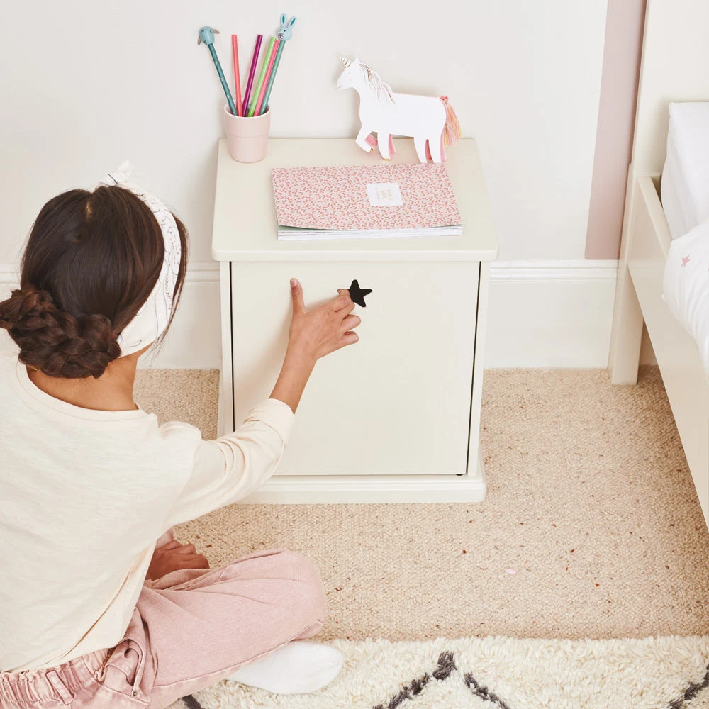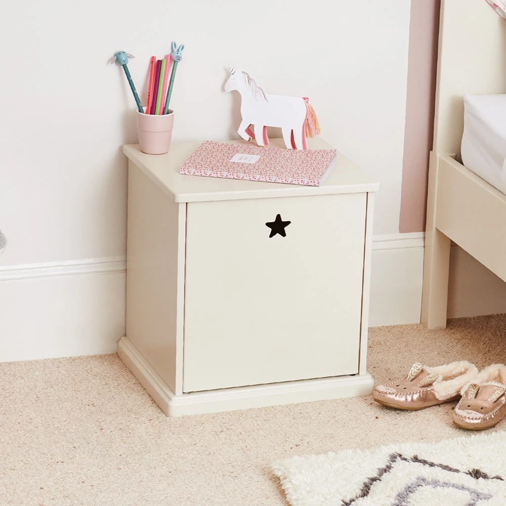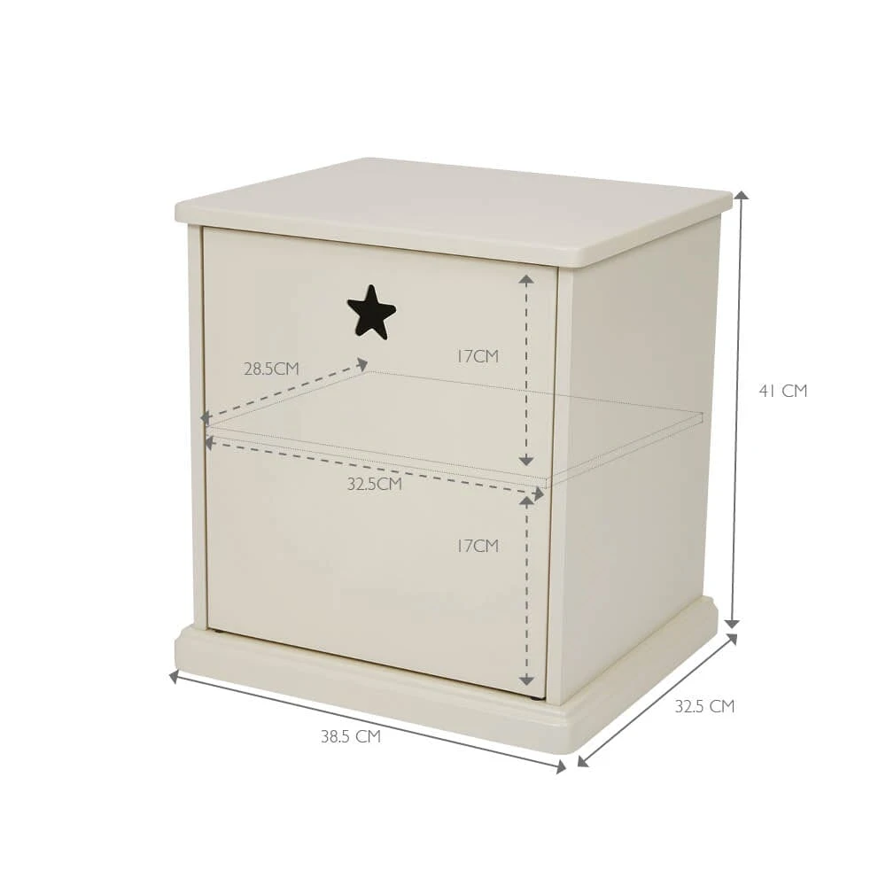 Our Star Bright Bedside Cupboard in oatmeal is smart, stylish and practical. Constructed from MDF, it’s also hard-wearing and robust, and has a durable painted finish that stays looking fresh. For night-time drinks and bedtime books, kids can make use of the roomy top surface or internal cupboard space. Match with our Star Bright Single Bed. Like the look? Our Star Bright range also comes in Bright White.