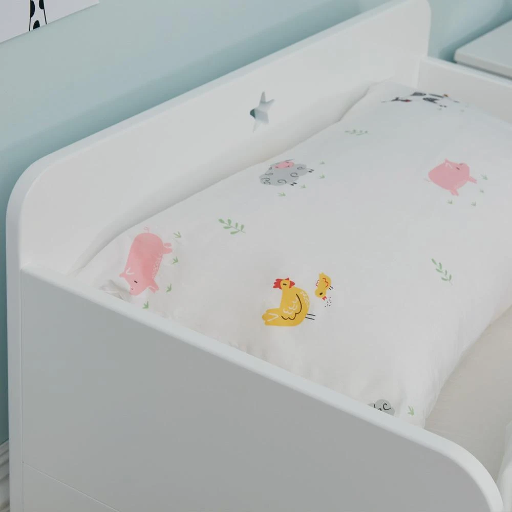 This Cot Bed requires a mattress sized 140L x 70W x 10H (cm). We recommend our Nutkin Toddler & Cot Bed Mattress with its micro pocket spring unit and anti-allergy finish. Team it up with our soft and snuggly Children’s Bedding – our sets come in toddler size, too!