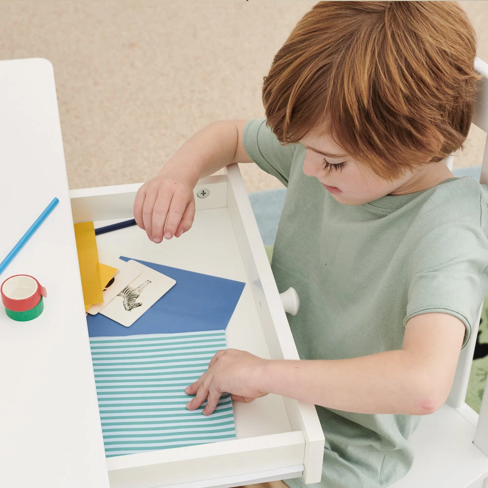 We’ve given our bestselling Junior Whittington Desk longer legs to make it suitable for older children (5yrs+). It’s smart, space-efficient, with storage shelves, a useful noticeboard, plus an opening for cables and a central, storage drawer. Even grown ups can use it. This lovely desk is made from sturdy MPF with a Bright White finish. We recommend teaming it up with our Nelson Chair .