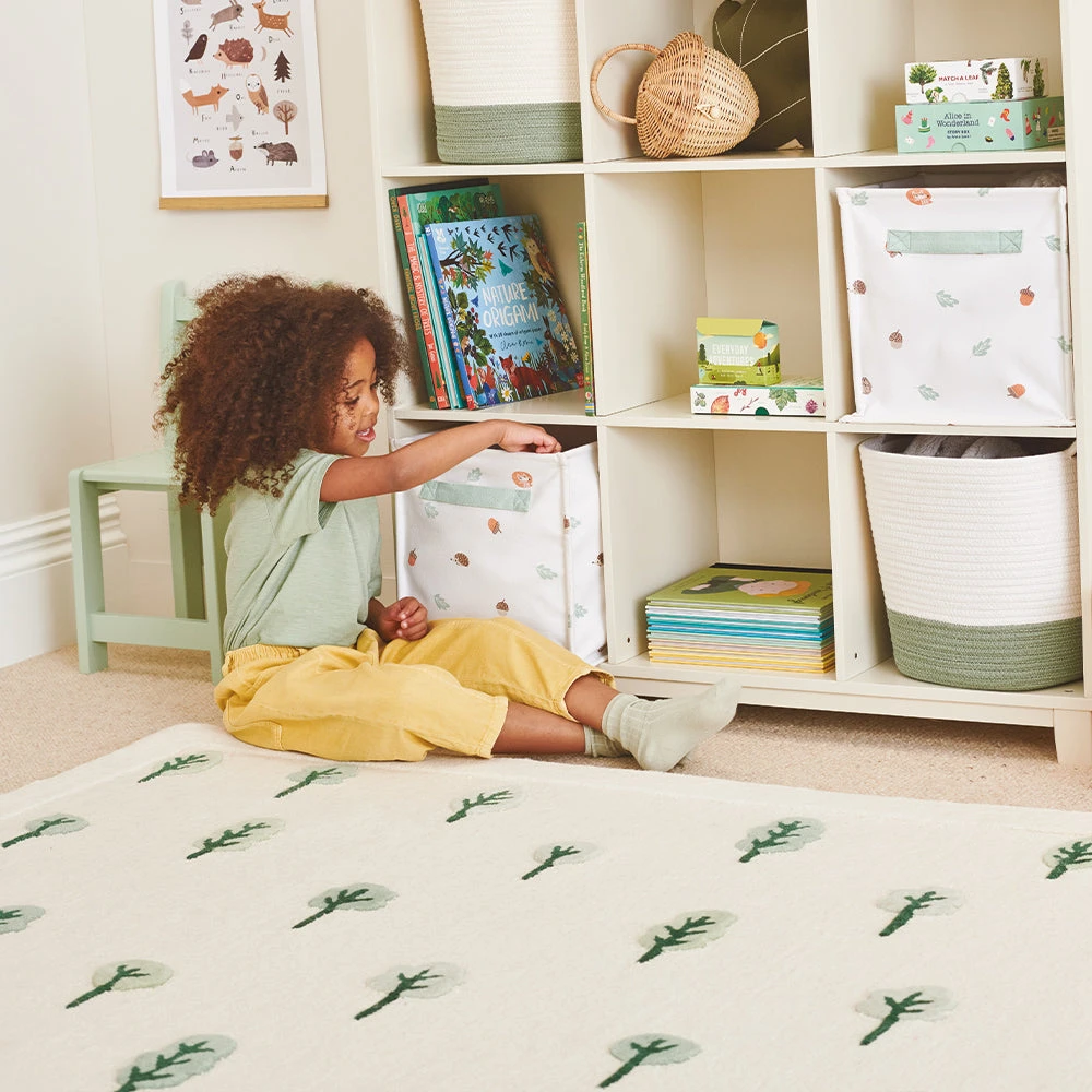 A beautiful rug for family spaces or bedrooms – perfect for nurseries too! It’s a beautiful mix of gentle greens which looks fabulous with touches of natural wood, especially our Gulliver Toy Storage or our Potter Bookcase.
